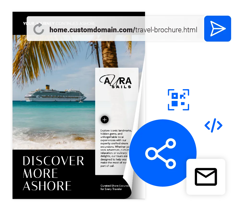 Flipsnack gives you multiple ways to reach advisors at scale. Share a single permanent link, embed materials directly on your trade partner portal or intranet, or send password-protected access to specific agency groups. Every advisor always lands on the latest version, no matter how they access it.