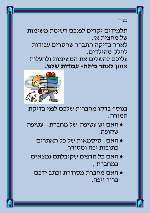משימות להגשה מחצית א תשע"ג