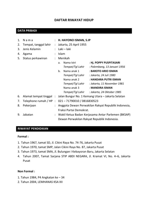 DAFTAR RIWAYAT HIDUP HAYONO ISMAN