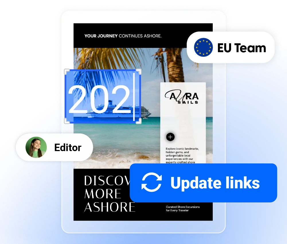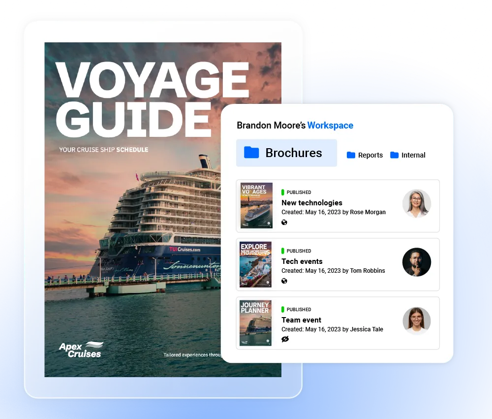 Itinerários complexos, documentos de reserva e folhetos de pacotes precisam ser precisos, confiáveis e fáceis de compartilhar. A Flipsnack ajuda os operadores turísticos a entregar publicações digitais profissionais aos clientes em segundos — e atualizá-las instantaneamente quando os detalhes mudam.