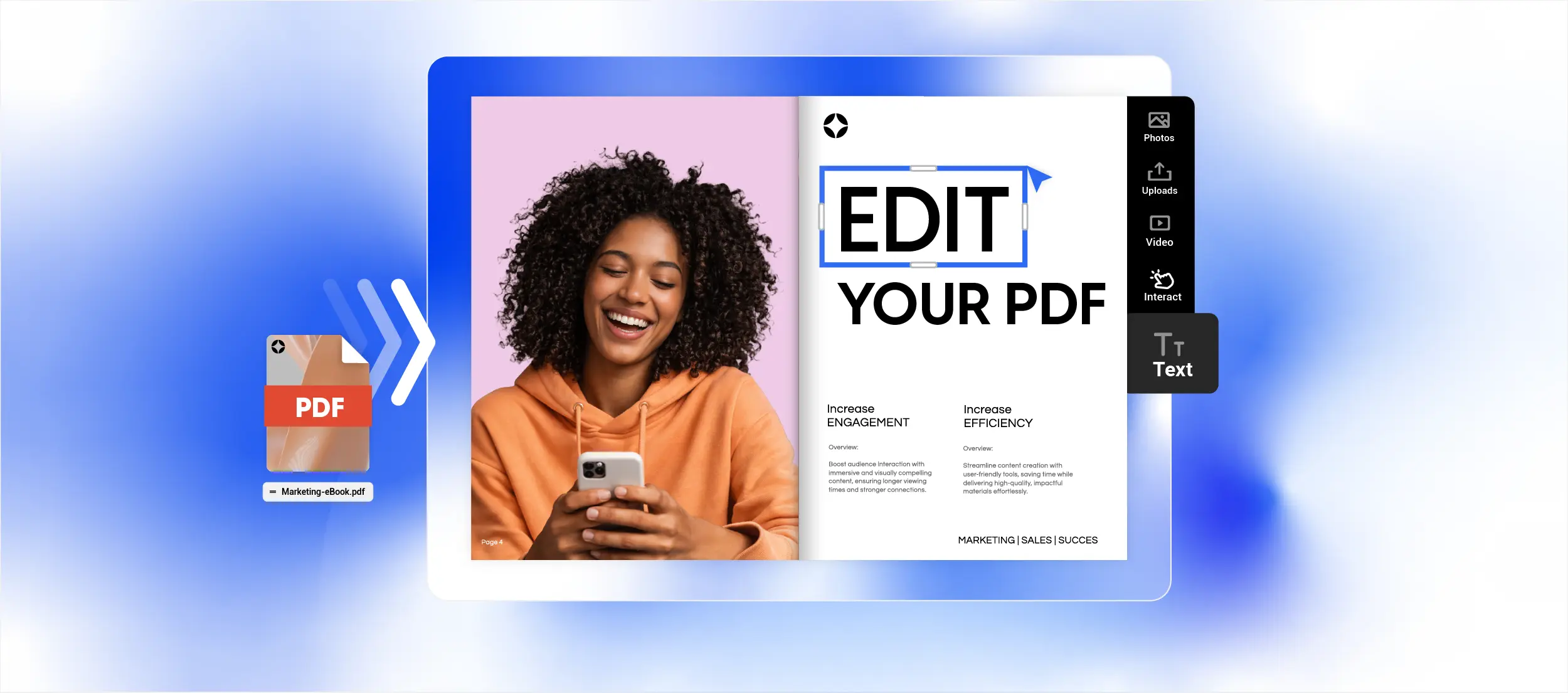 Our online PDF editor let's businesses edit PDFs online without the original design file. Update text, replace images, and secure documents in one smooth workflow.