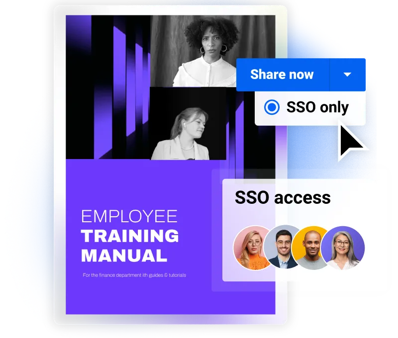Teilen Sie digitale Mitarbeiterhandbücher sicher per SSO innerhalb des Onboarding-Prozesses. Gewähren Sie direkten Zugriff über das SSO-System und behandeln Sie die Handbücher vertraulich.