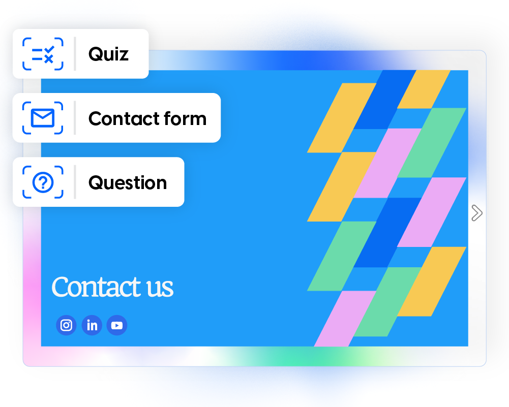 Add quizzes, questions, or contact forms to your flipbook in a few steps. All responses automatically appear in the flipbook statistics dashboard.