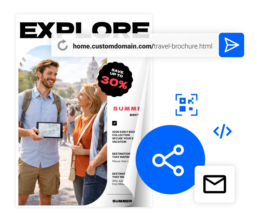Non Téléchargez vos PDF existants et ils deviendront instantanément des flipbooks interactifs. Ou utilisez le studio de design de Flipsnack pour créer des modèles de marque à partir de zéro. Tous les membres de votre équipe peuvent ouvrir un modèle, mettre à jour le contenu et publier sans compétences en conception ni outils externes.
