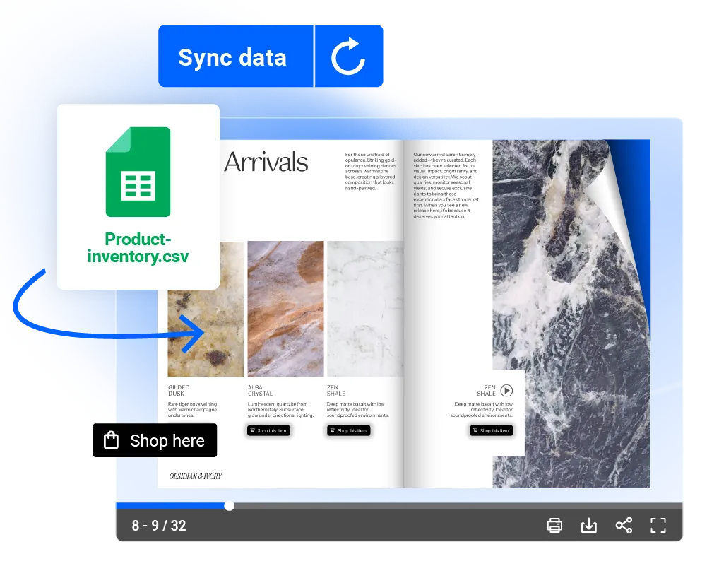 Turn static PDFs and product sheets into interactive digital catalogs that are always current and built to scale.