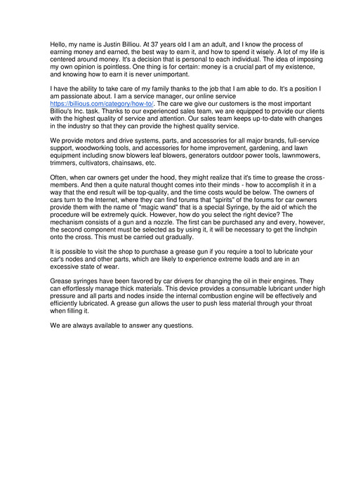 Hi, my name's Justin Billiou, at 37 years old, I'm an adult and I understand the process of earning money and earned, the best way to earn it, and how to spend it in a responsible manner. Money is a major element of my daily life. It's a matter of opinion. is a personal decision for each person and to give my opinion here is meaningless.
