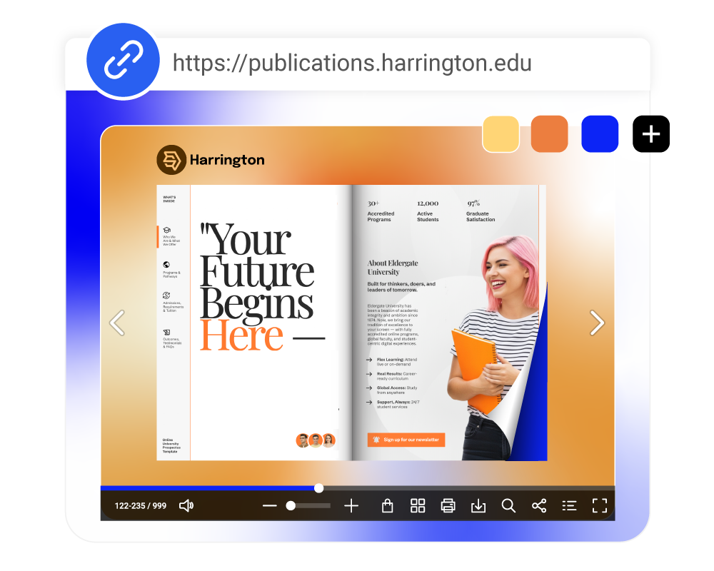 Flipsnack helps educational institutions turn static PDFs into interactive, branded publications that look great on any device and are easy to share. From enrolment guides and alumni magazines to internal reports, it’s a simpler way to publish digital content that’s on-brand, accessible, and built for today’s audiences.