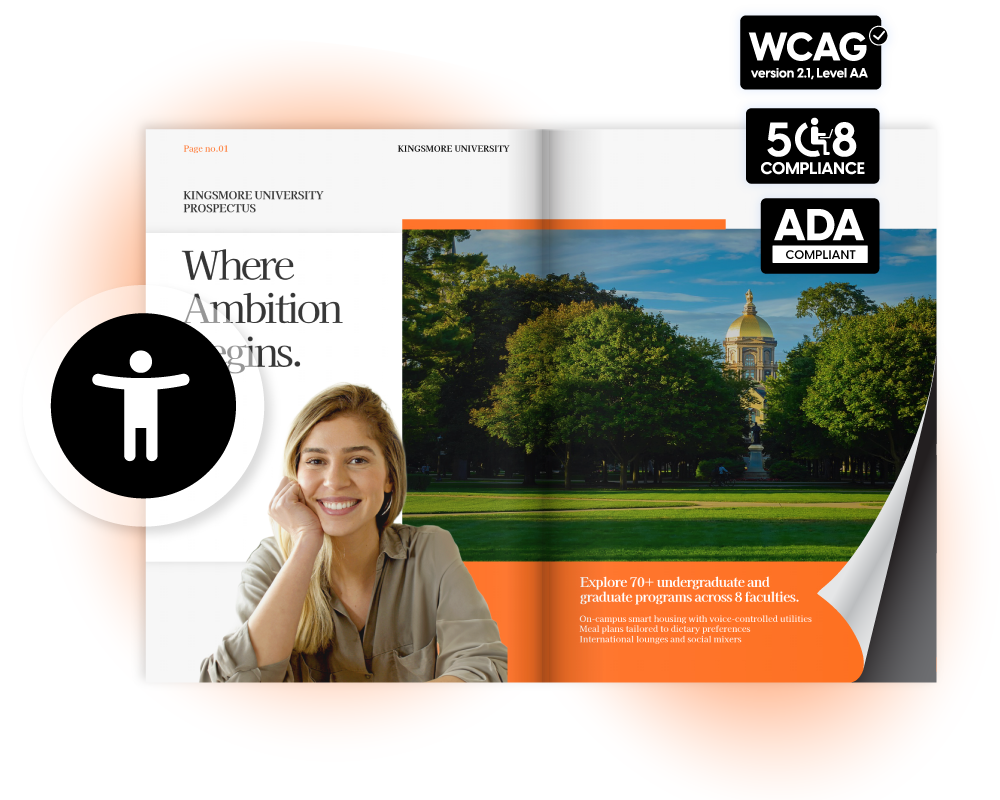 Flipsnack helps universities meet WCAG 2.1 AA, ADA, and Section 508 standards. So all students, faculty, and families can engage with digital content.